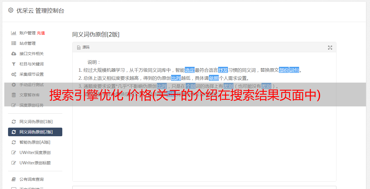 优采云 发布时间: 2022-01-19 18:03搜索引擎优化 价格(关于的介绍在搜索结果页面中)