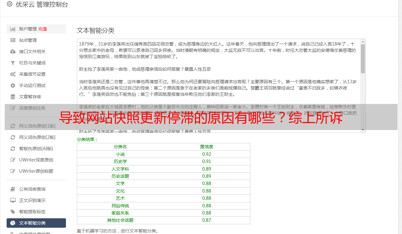 导致网站快照更新停滞的原因有哪些?综上所诉