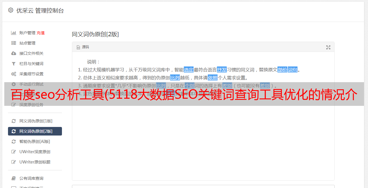 优采云 发布时间: 2022-01-20 16:14百度seo分析工具(5118大数据SEO关键词查询工具优化的情况介绍!)