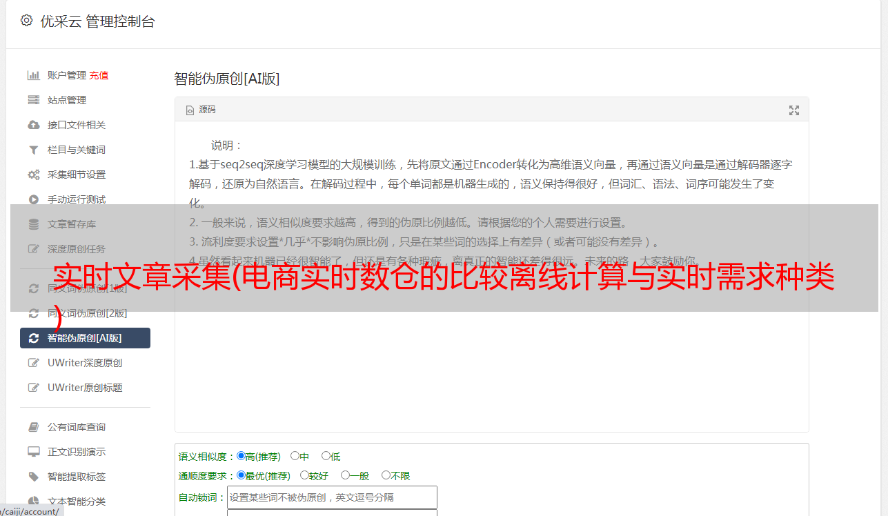 优采云 发布时间: 2022-01-20 20:02实时文章采集(电商实时数仓的比较离线计算与实时需求种类