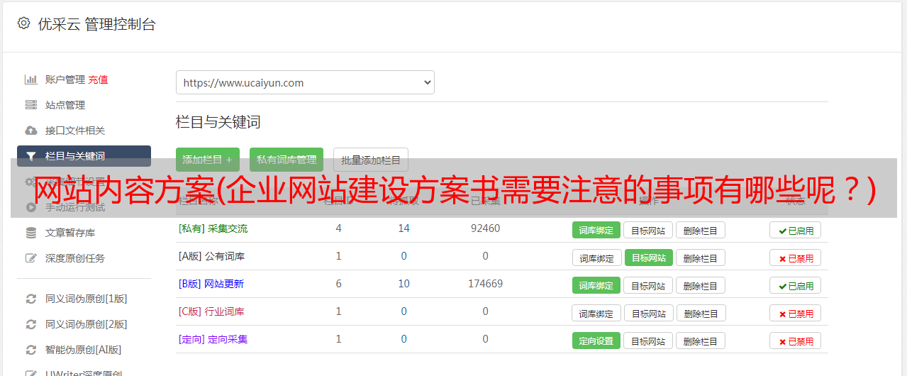 优采云 发布时间: 2022-01-21 02:02网站内容方案(企业网站建设方案书需要注意的事项有哪些呢?)