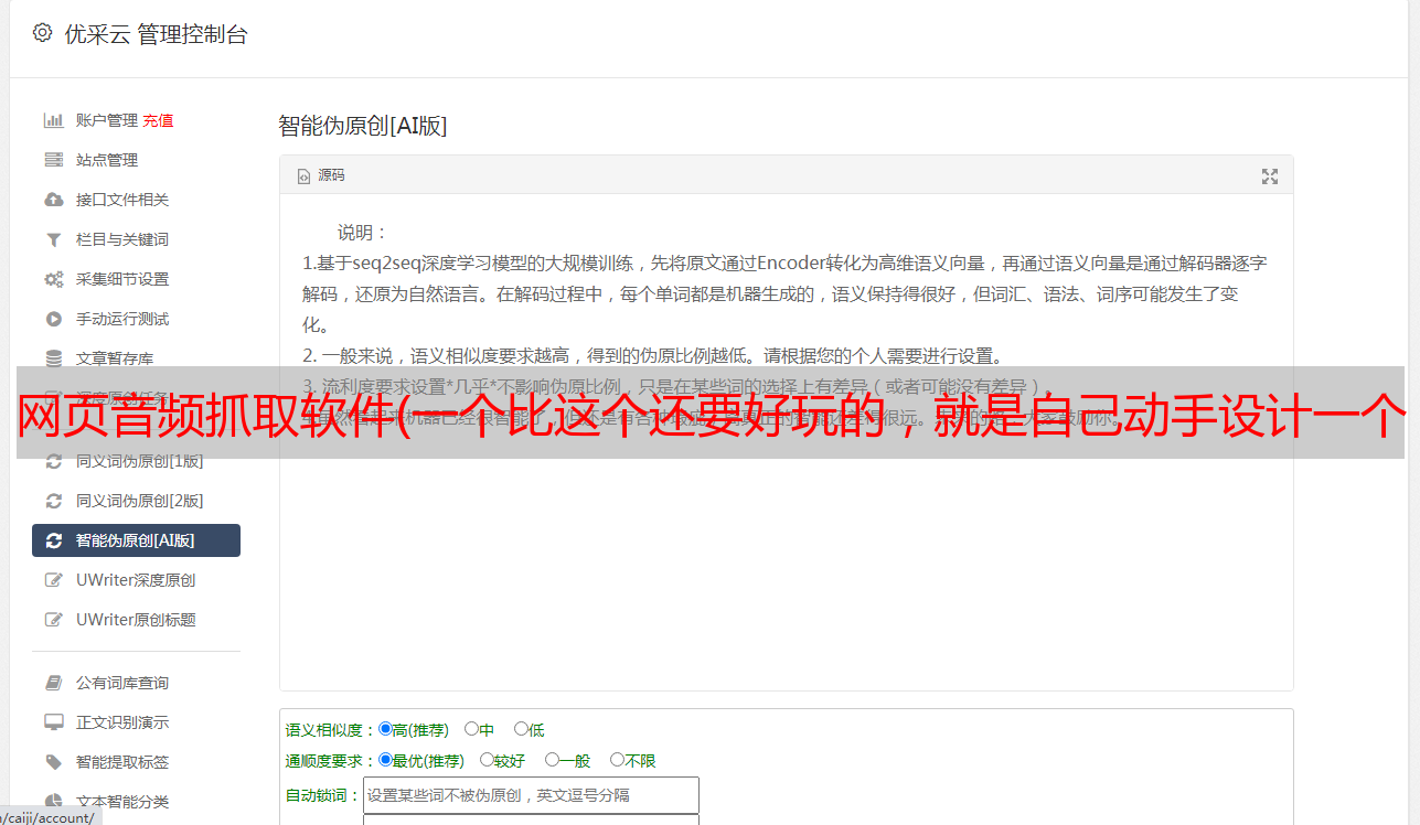 优采云 发布时间: 2022-01-21 08:08网页音频抓取软件(一个比这个还要好玩的,就是自己动手设计一个歌曲下载软件