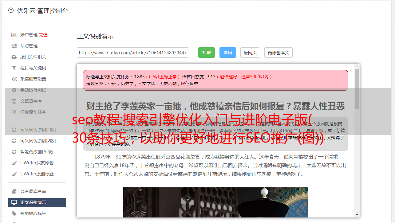 优采云 发布时间: 2022-01-21 13:12seo教程:搜索引擎优化入门与进阶电子版(