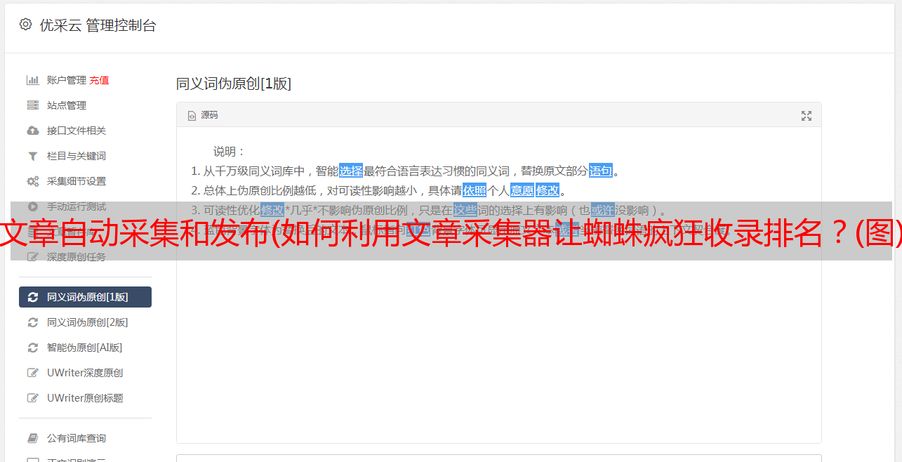 优采云 发布时间: 2022-01-21 18:21文章自动采集和发布(如何利用文章采集器让蜘蛛疯狂收录排名?(图)