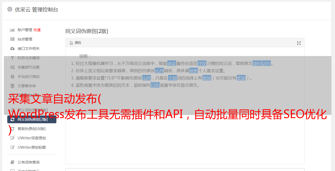 3.自带伪原创的功能,使得发布的文章更加原创友好,增加了搜索引擎的友好度。收录 网站 的速率增加