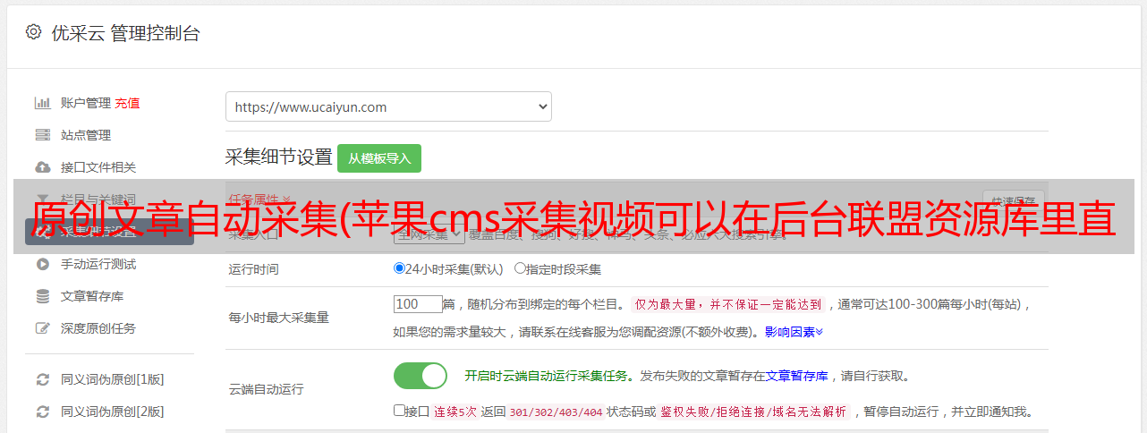 优采云 发布时间: 2022-01-21 23:06原创文章自动采集(苹果cms采集视频可以在后台联盟资源库里直接设置采集)