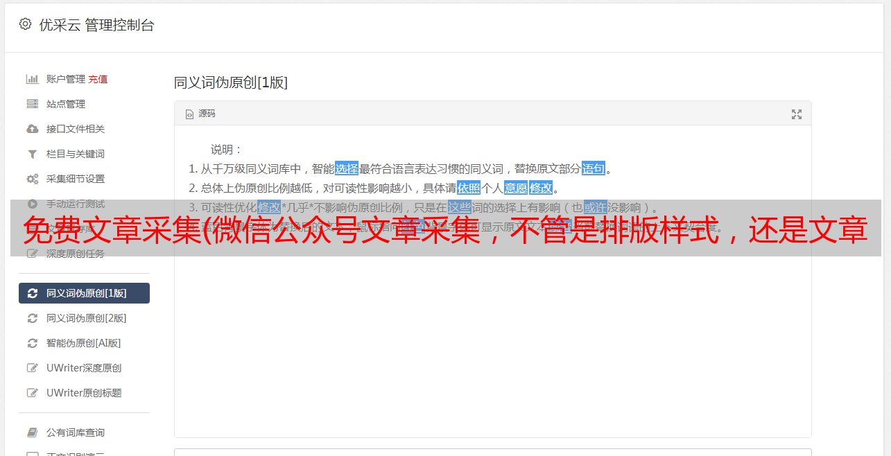如果只使用原文的排版,带文章采集过来后,只能【替换文字和图片】。