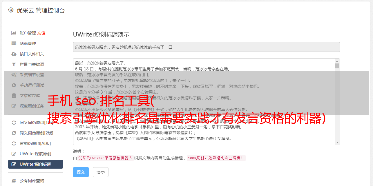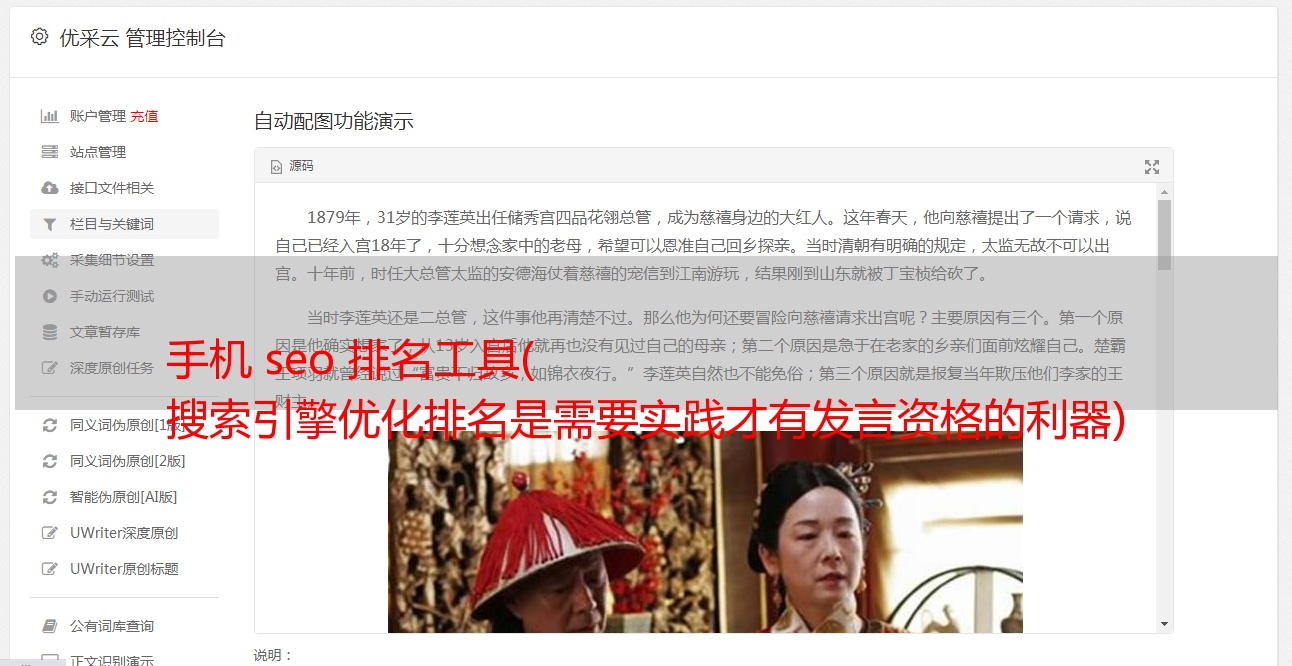 优采云 发布时间: 2022-01-22 04:12手机 seo 排名工具(