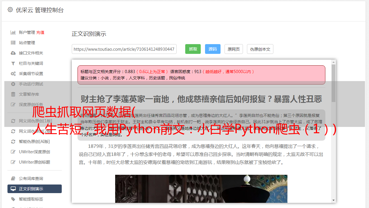 优采云 发布时间: 2022-01-22 04:18爬虫抓取网页数据(