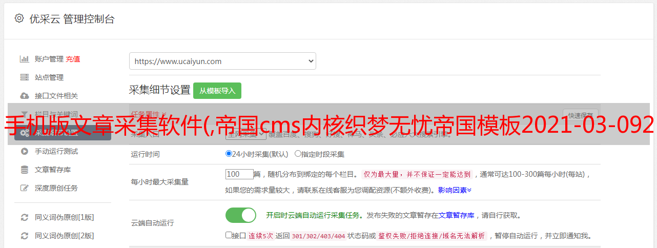 优采云 发布时间: 2022-01-22 23:12手机版文章采集软件(,帝国cms内核织梦无忧帝国模板2021-03-0920:39)