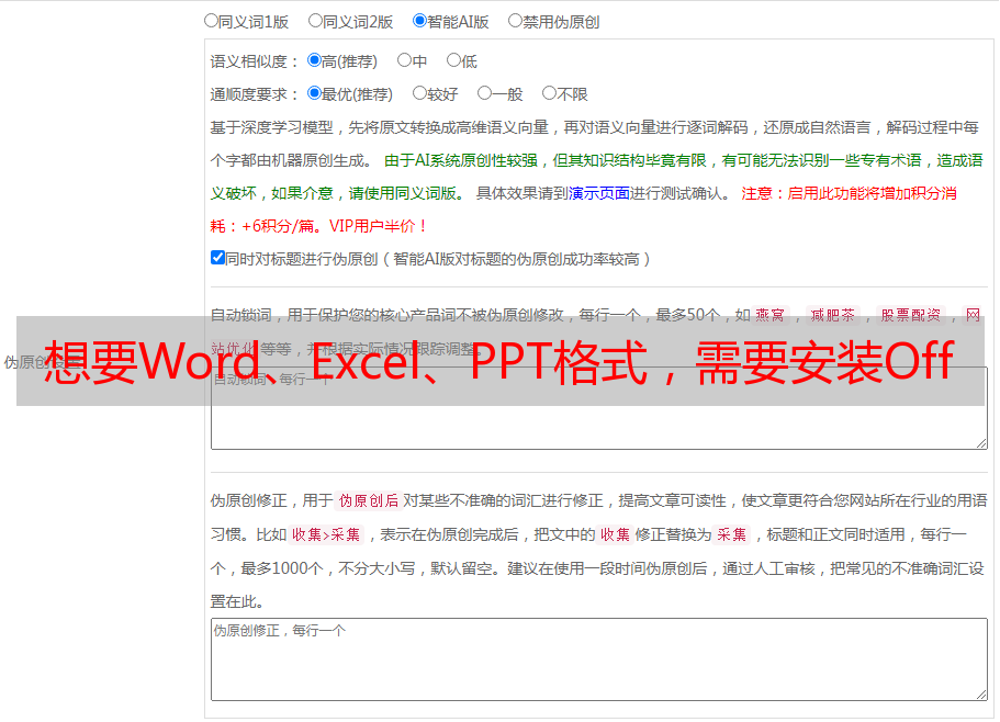 ([2)如果要搜索Word,Excel,PPT格式,则需要安装Office套件。
