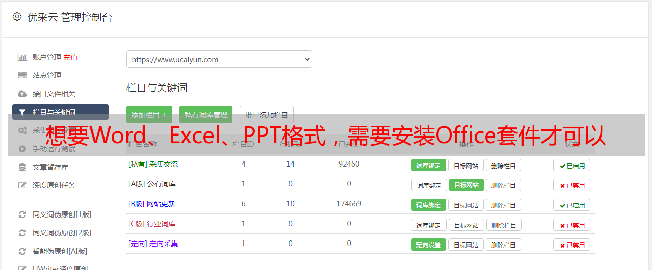 优采云 发布时间: 2021-04-27 18:14想要Word、Excel、PPT格式,需要安装Office套件才可以