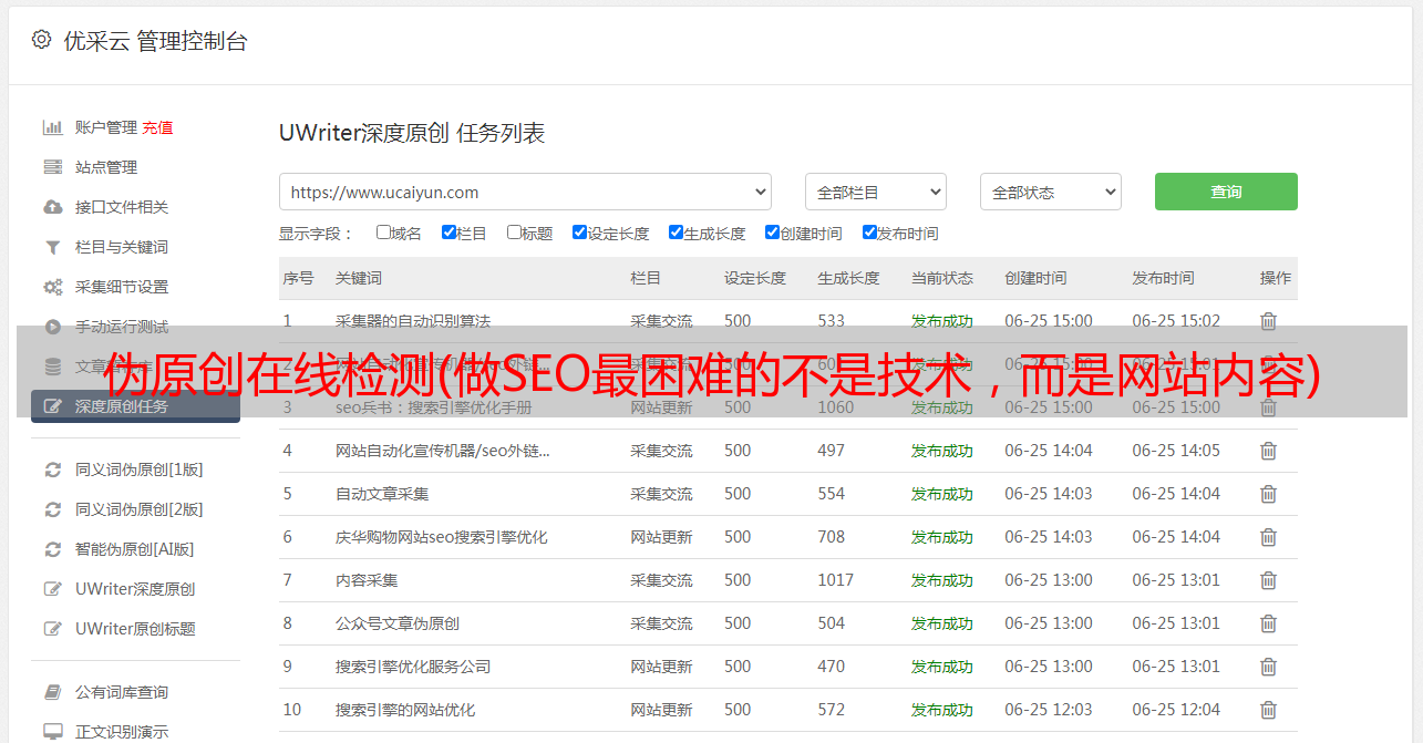 优采云 发布时间: 2022-01-23 06:08伪原创在线检测(做SEO最困难的不是技术,而是网站内容)