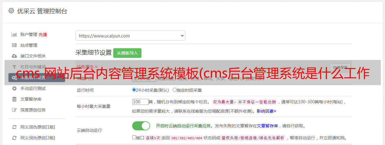 优采云 发布时间: 2022-01-23 22:01cms 网站后台内容管理系统模板(cms后台管理系统是什么工作快速建站,网站模板建站平台)