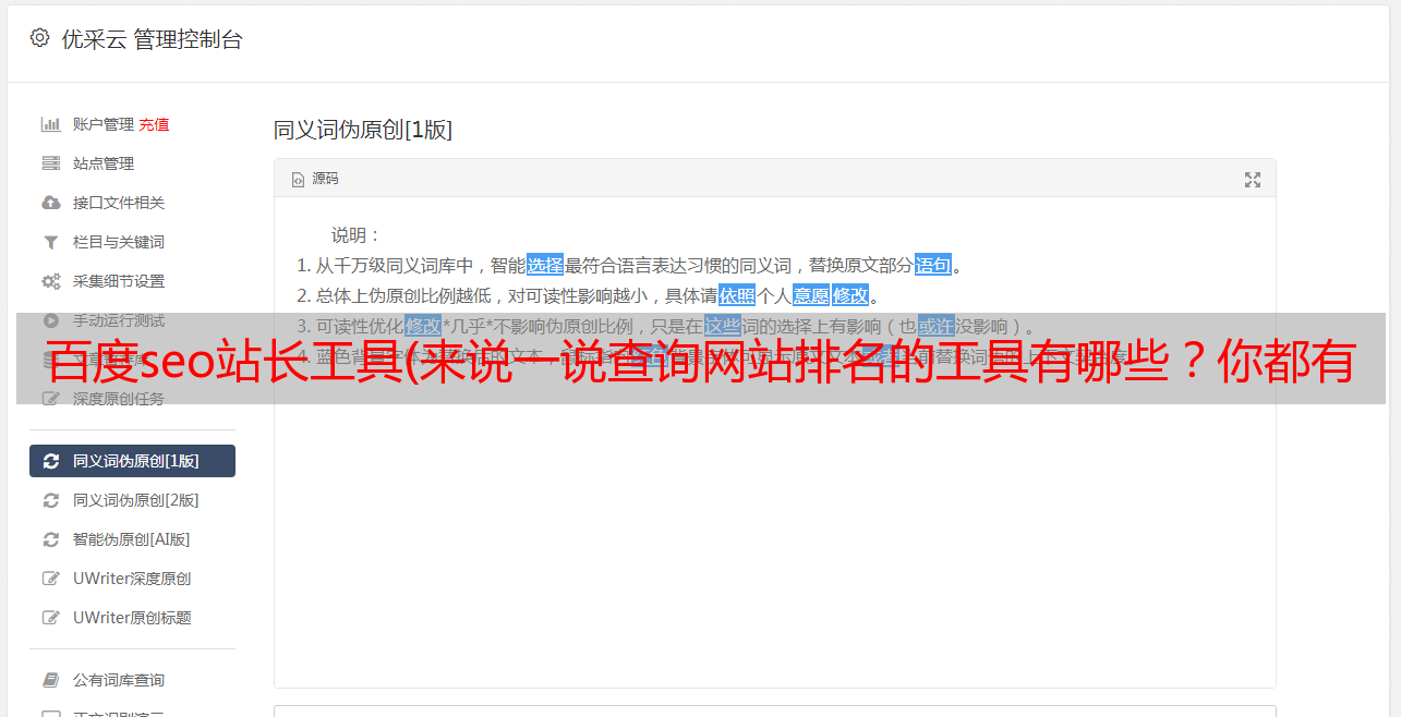 优采云 发布时间: 2022-01-24 03:19百度seo站长工具(来说一说查询网站排名的工具有哪些?你都有使用过吗)