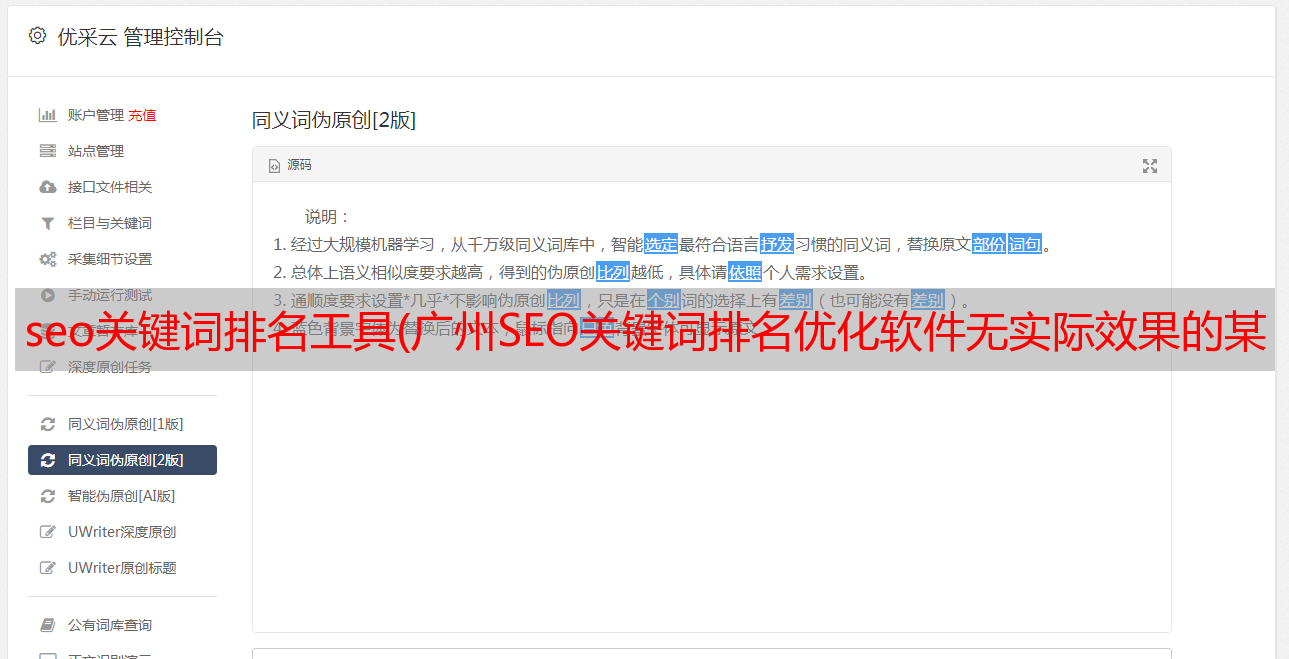 广州SEO关键词排名优化软件:这个之前用的比较多