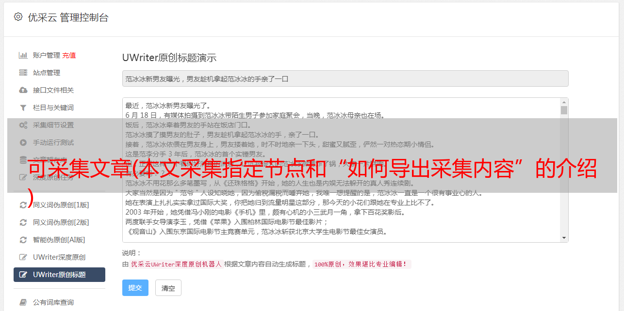 可采集文章(本文采集指定节点和“如何导出采集内容”的介绍 )