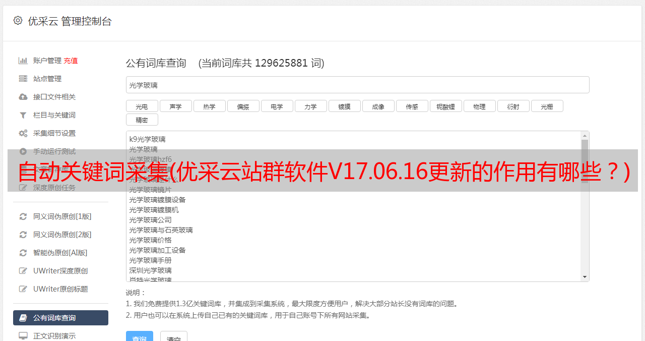 自动关键词采集(优采云站群软件V17.06.16更新的作用有哪些?)