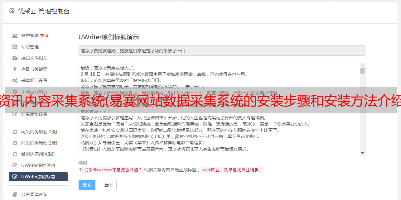 资讯内容采集系统(易赛网站数据采集系统的安装步骤和安装方法介绍! )