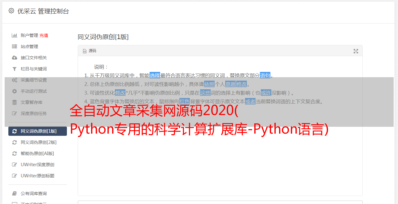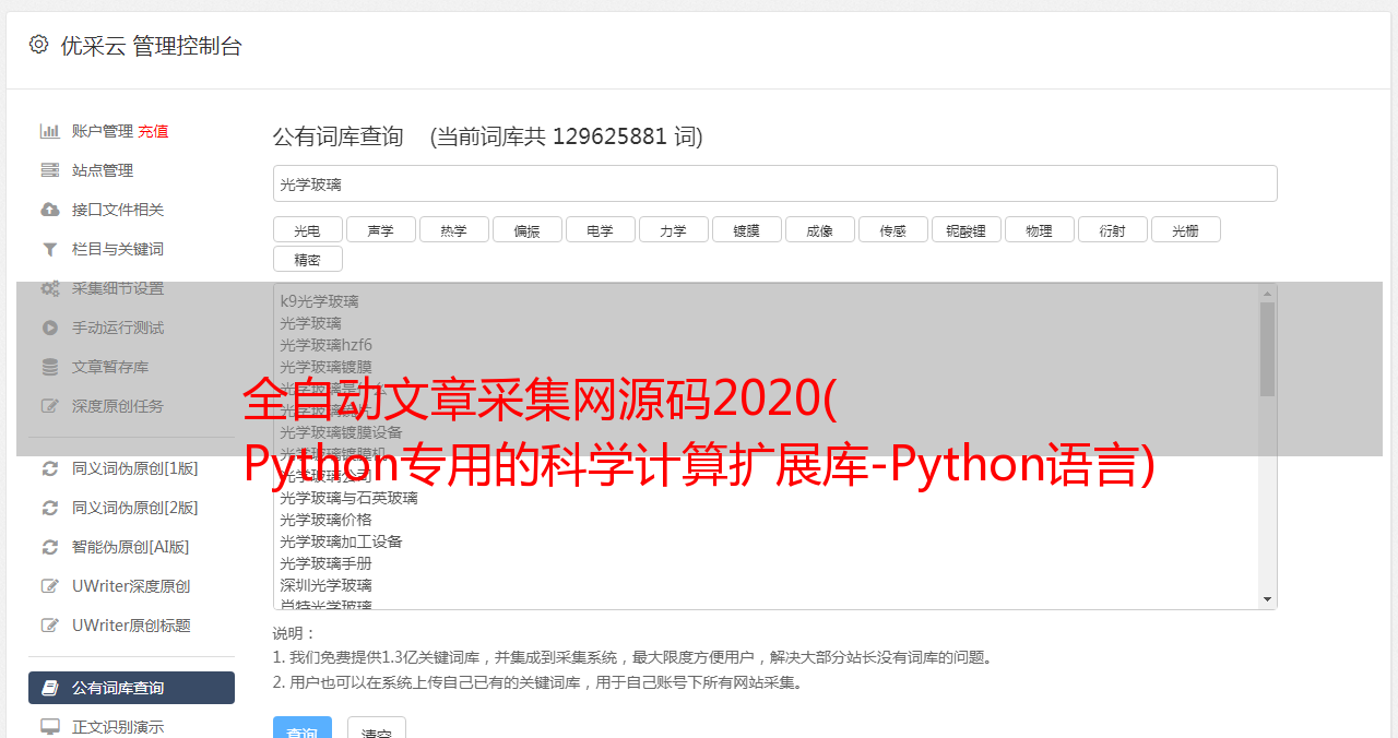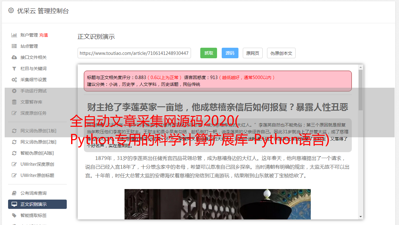 全自动文章采集网源码2020( Python专用的科学计算扩展库-Python语言)