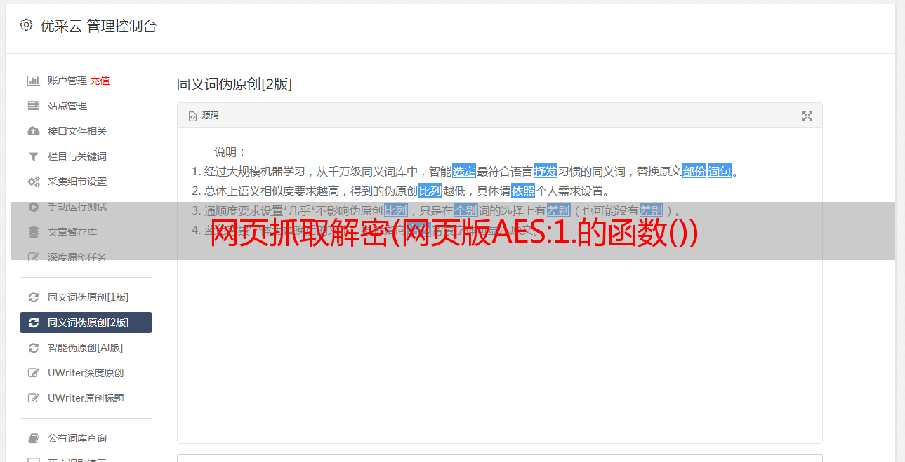 优采云 发布时间: 2022-01-24 23:17网页抓取解密(网页版AES:1.的函数())