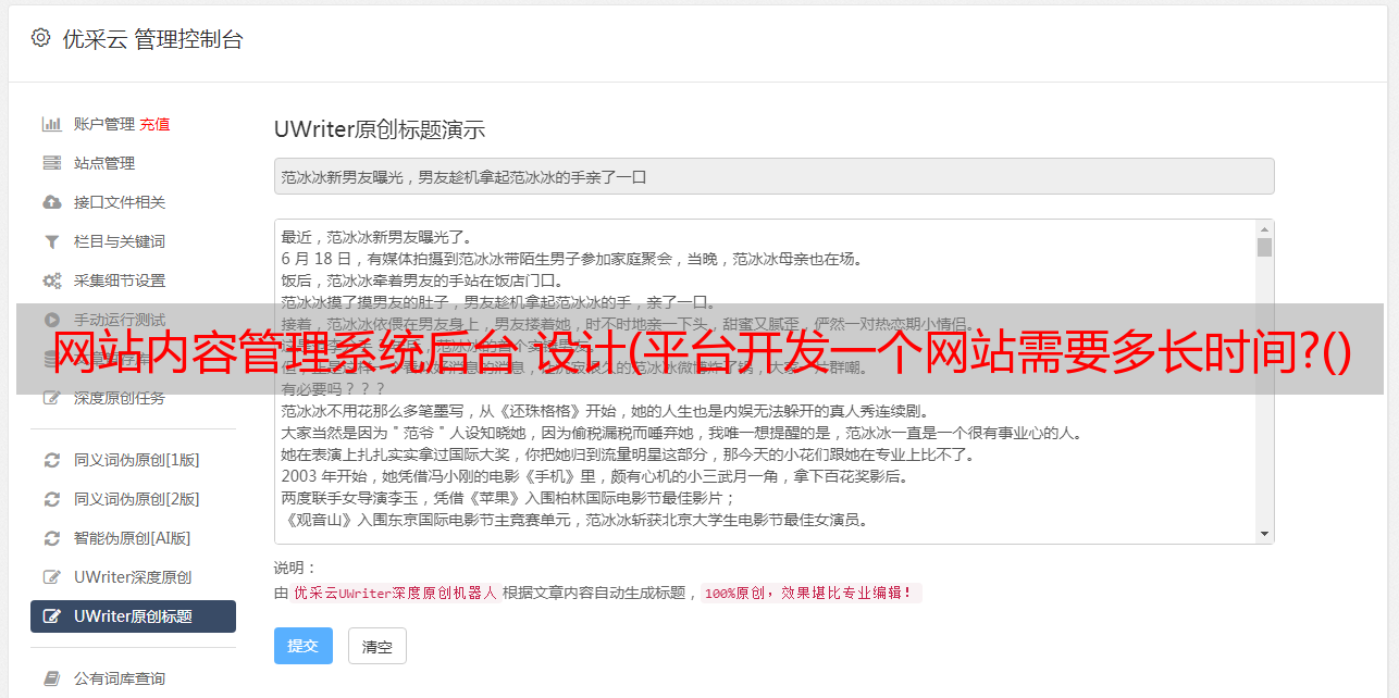 优采云 发布时间: 2022-01-25 01:25网站内容管理系统后台 设计(平台开发一个网站需要多长时间?()的设计要求)