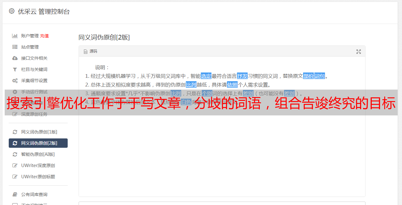 优采云 发布时间: 2021-04-28 02:03搜索引擎优化工作于于写文章,分歧的词语,组合告竣终究的目标