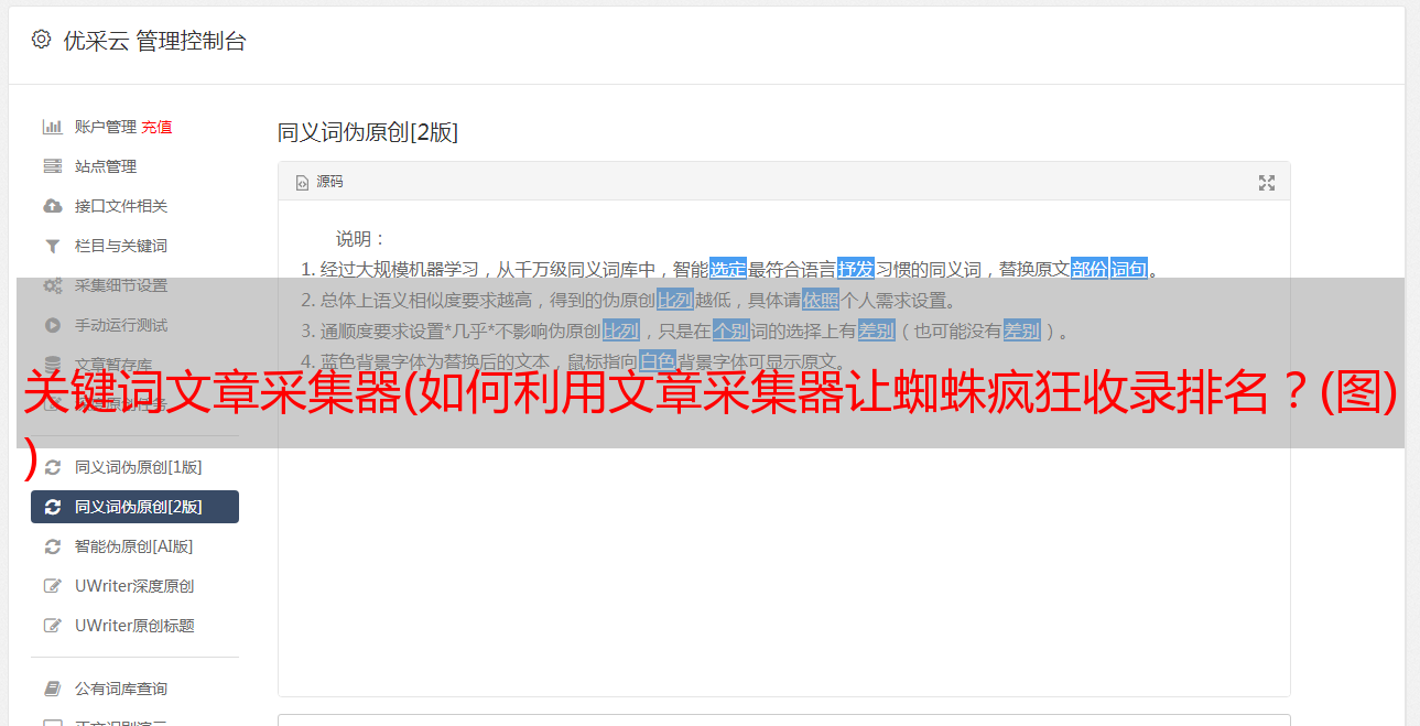 优采云 发布时间: 2022-01-25 14:14关键词文章采集器(如何利用文章采集器让蜘蛛疯狂收录排名?(图)