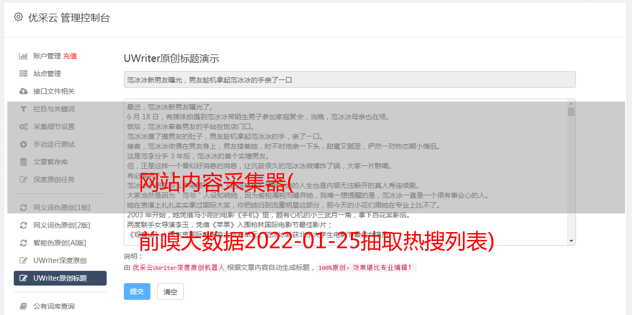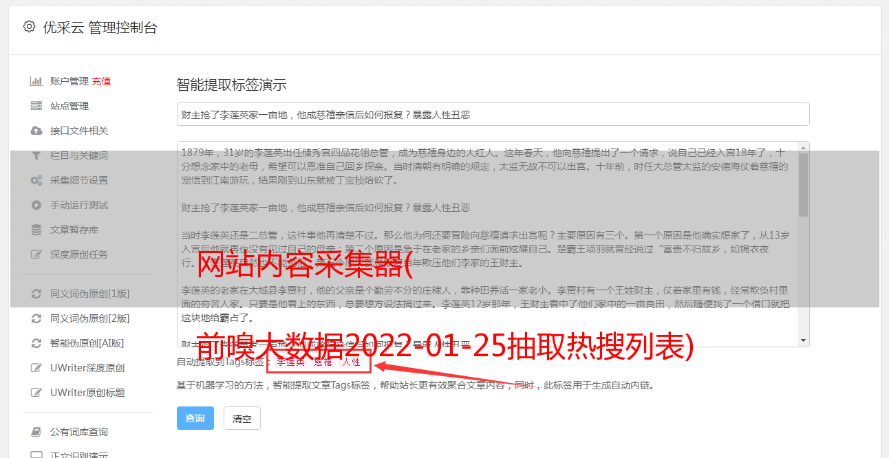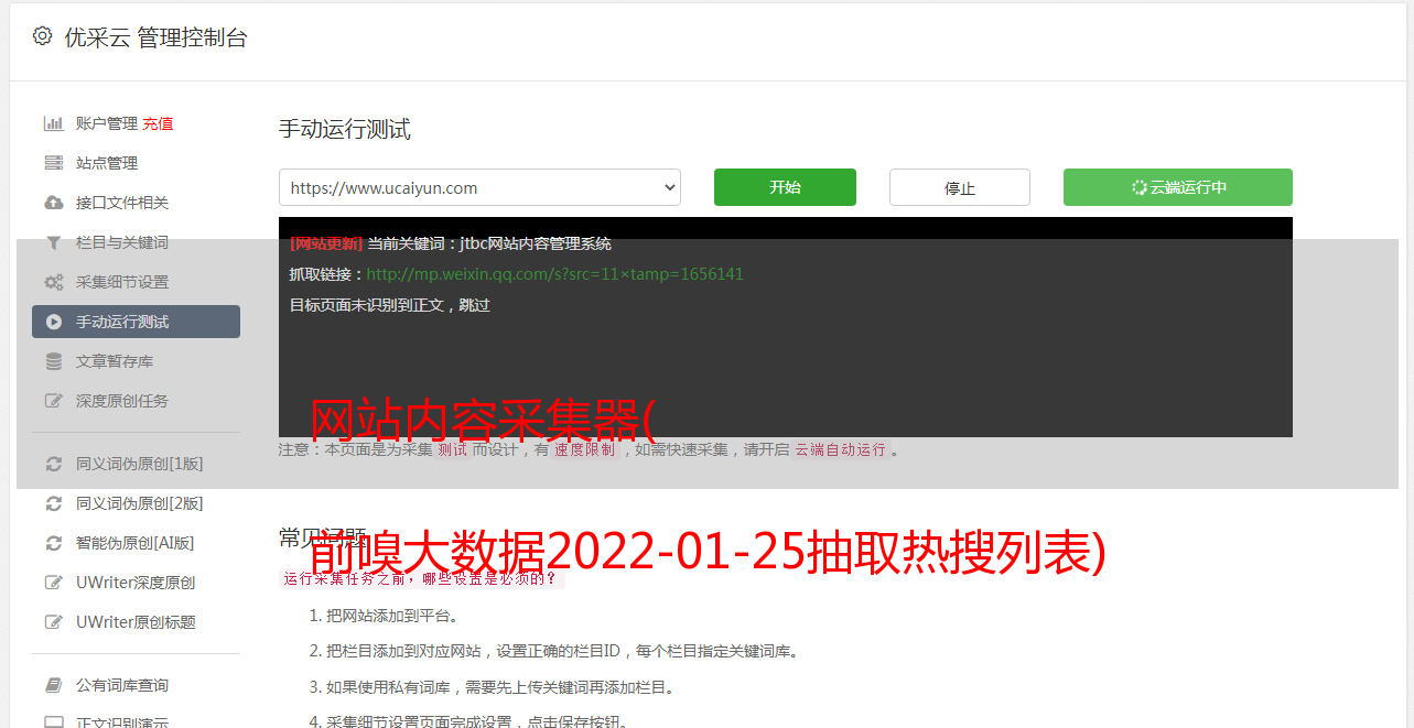 优采云 发布时间: 2022-01-26 01:16网站内容采集器(