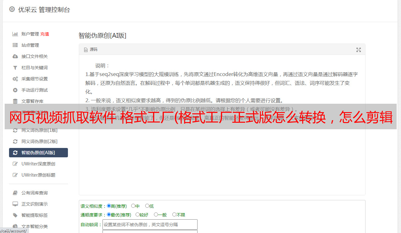 优采云 发布时间: 2022-01-26 05:20网页视频抓取软件 格式工厂(格式工厂正式版怎么转换,怎么剪辑视频下载?)
