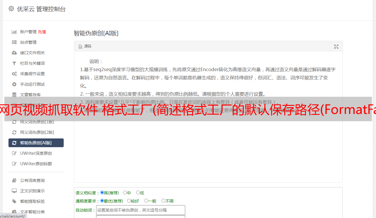 优采云 发布时间: 2022-01-26 16:08网页视频抓取软件 格式工厂(简述格式工厂的默认保存路径(FormatFactory)-)