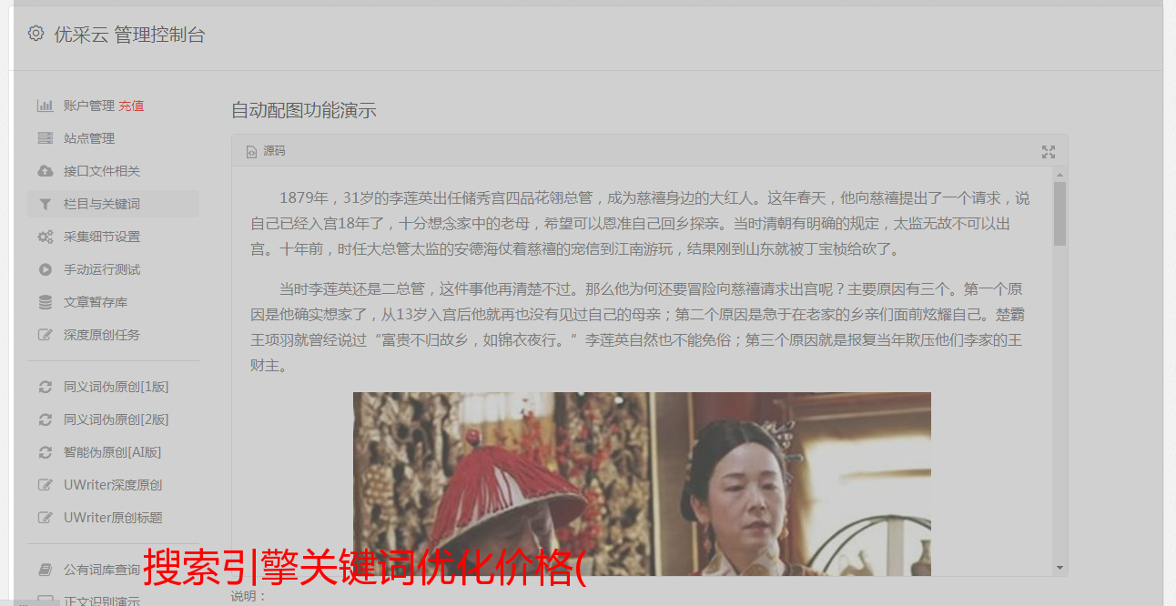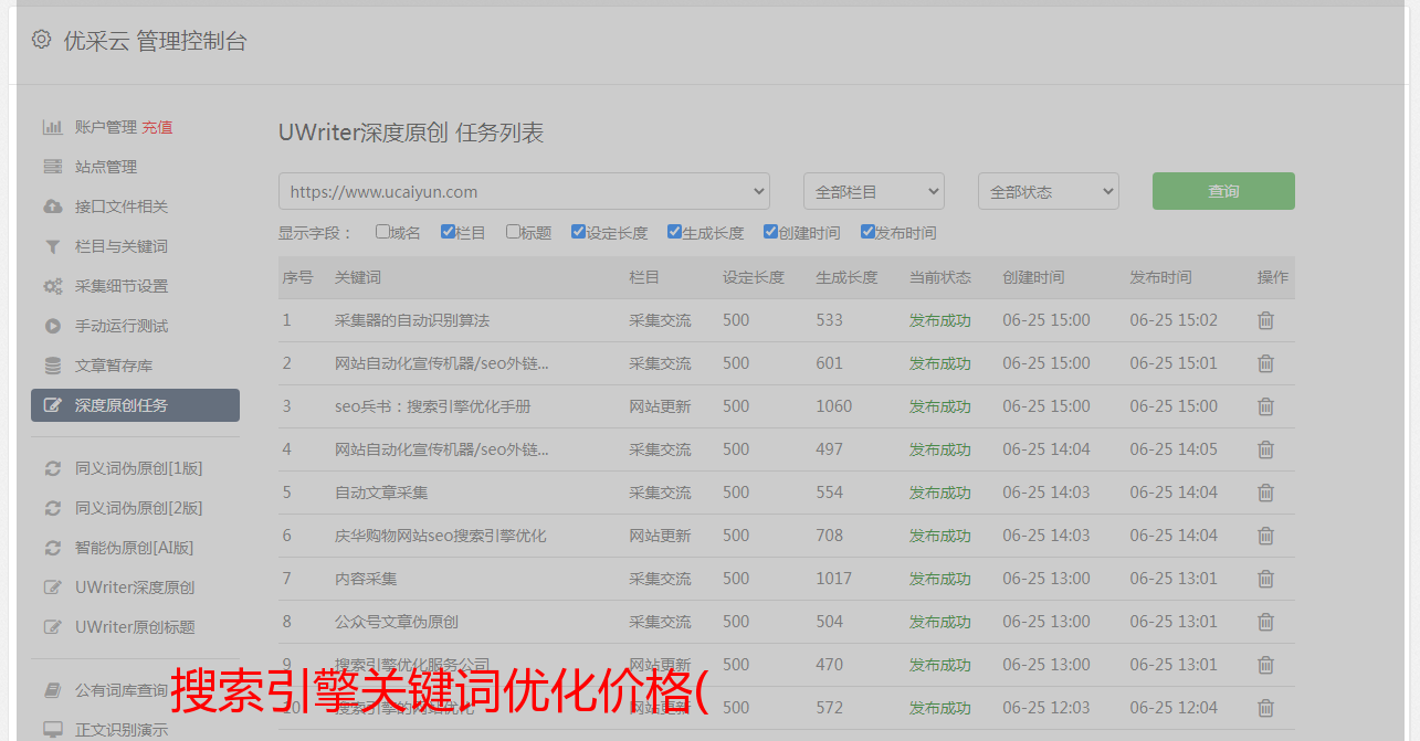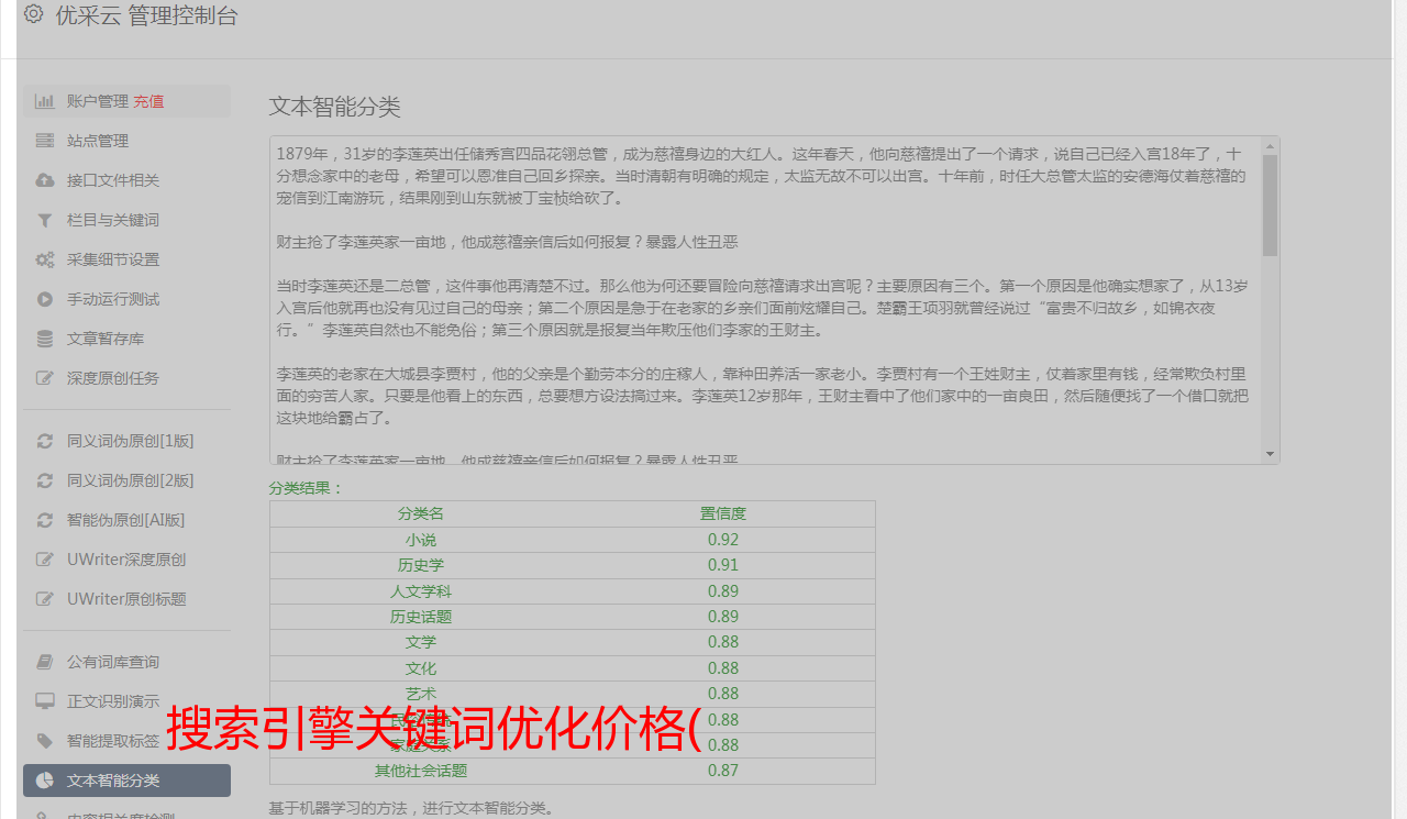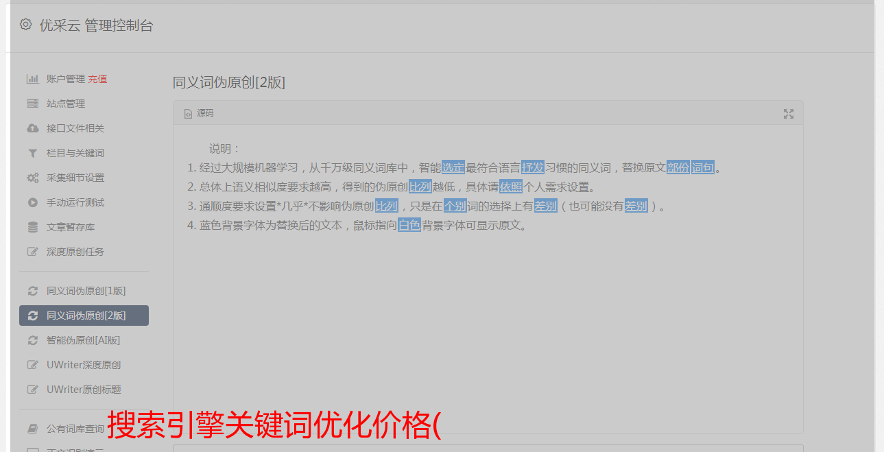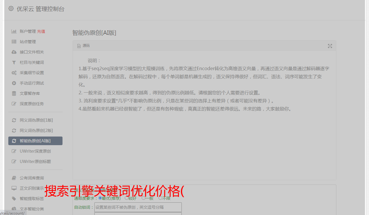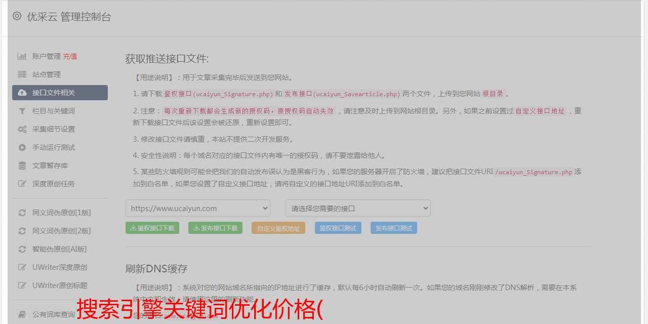提供网页管理平台,可通过接口将关键词加入有帮云关键词估价系统。为有开发能力的团队提供API支持,构建自己的业务系统