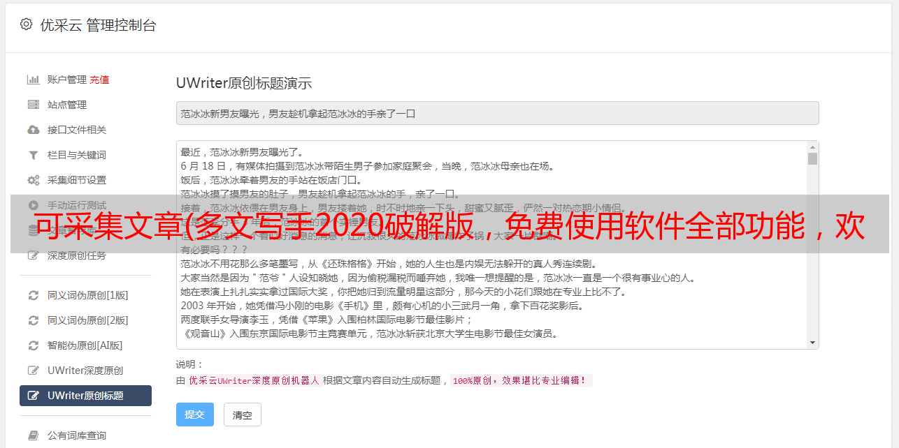 可采集文章(多文写手2020破解版,免费使用软件全部功能,欢迎下载体验)