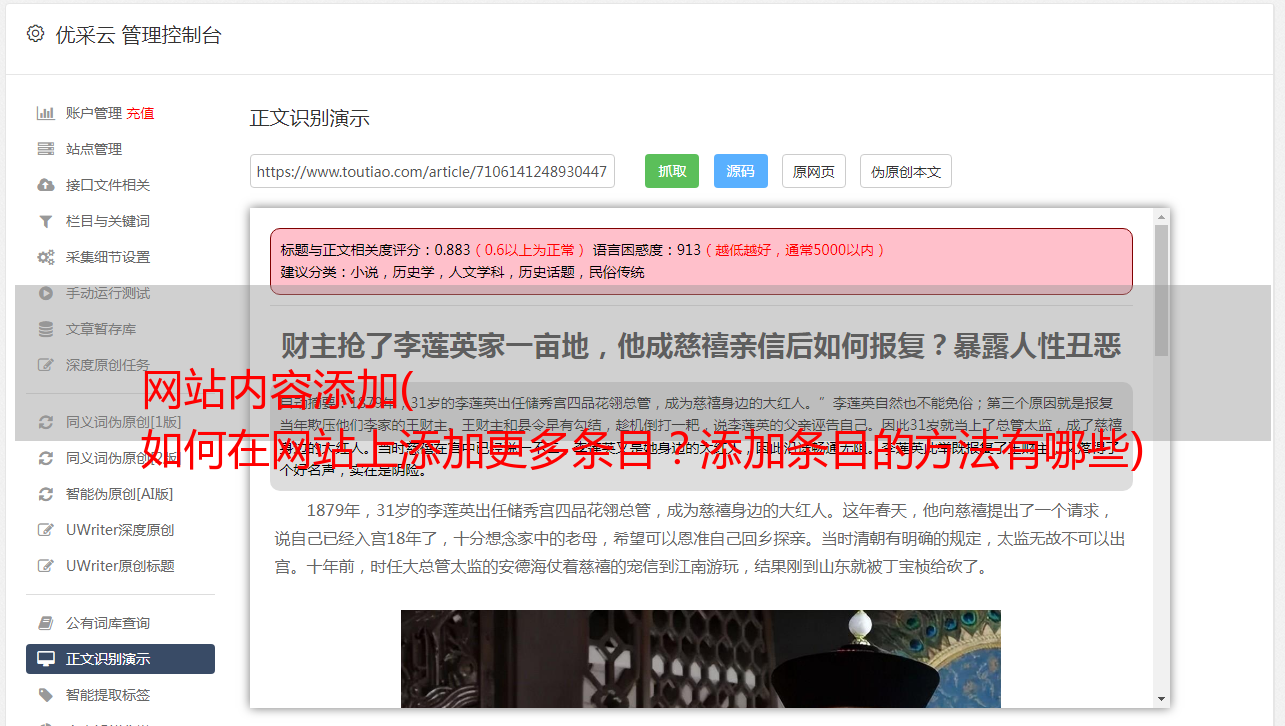 优采云 发布时间: 2022-01-27 04:02网站内容添加(