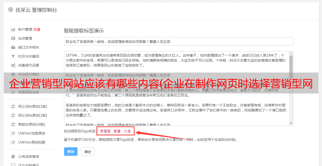 优采云 发布时间: 2022-01-27 06:04企业营销型网站应该有哪些内容(企业在制作网页时选择营销型网站或展示型?)