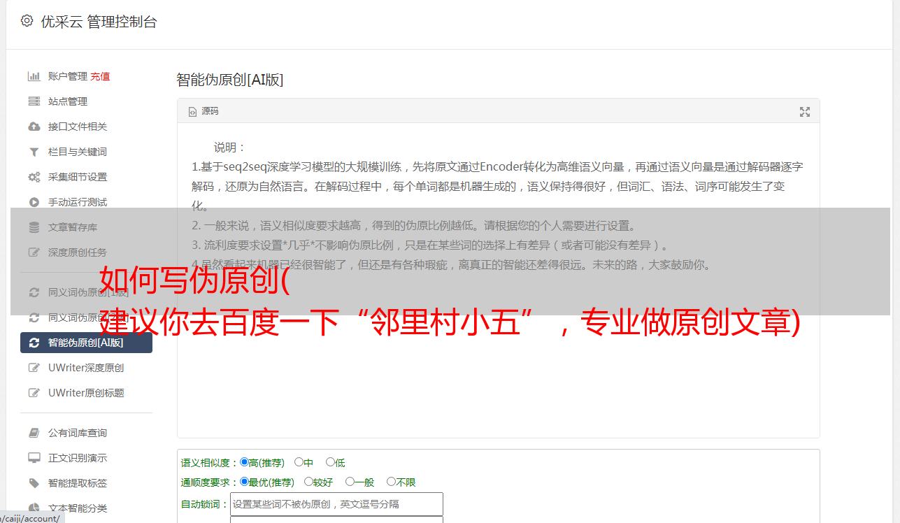 其实最好不要使用伪原创工具,因为伪原创工具发布的文章很差,所以建议手动使用伪原创