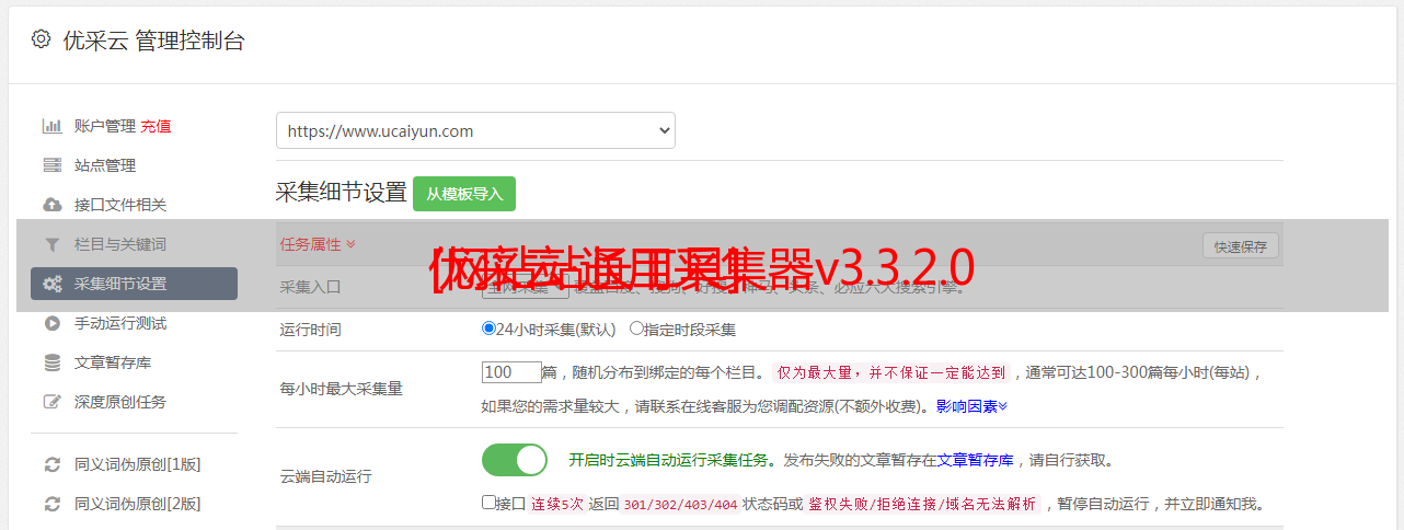 [网站站长工具] 优采云·通用采集器v3.3.2.0