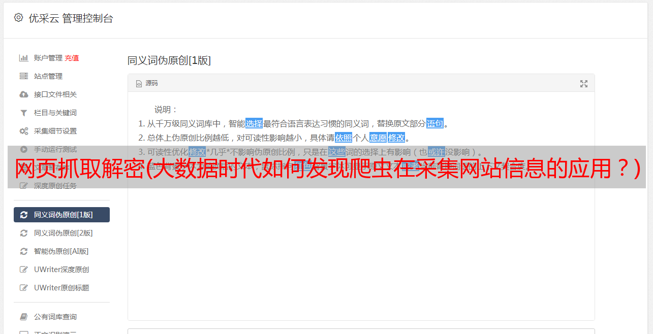 优采云 发布时间: 2022-01-28 17:05网页抓取解密(大数据时代如何发现爬虫在采集网站信息的应用?)