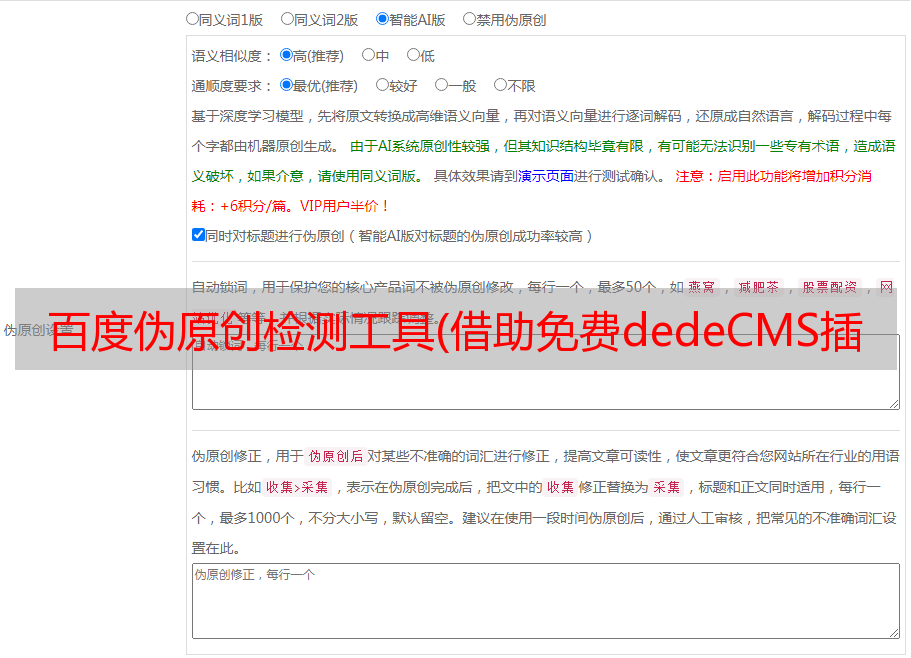 百度伪原创检测工具(借助免费dedeCMS插件快速提升网站收录以及关键词排名的方法 )