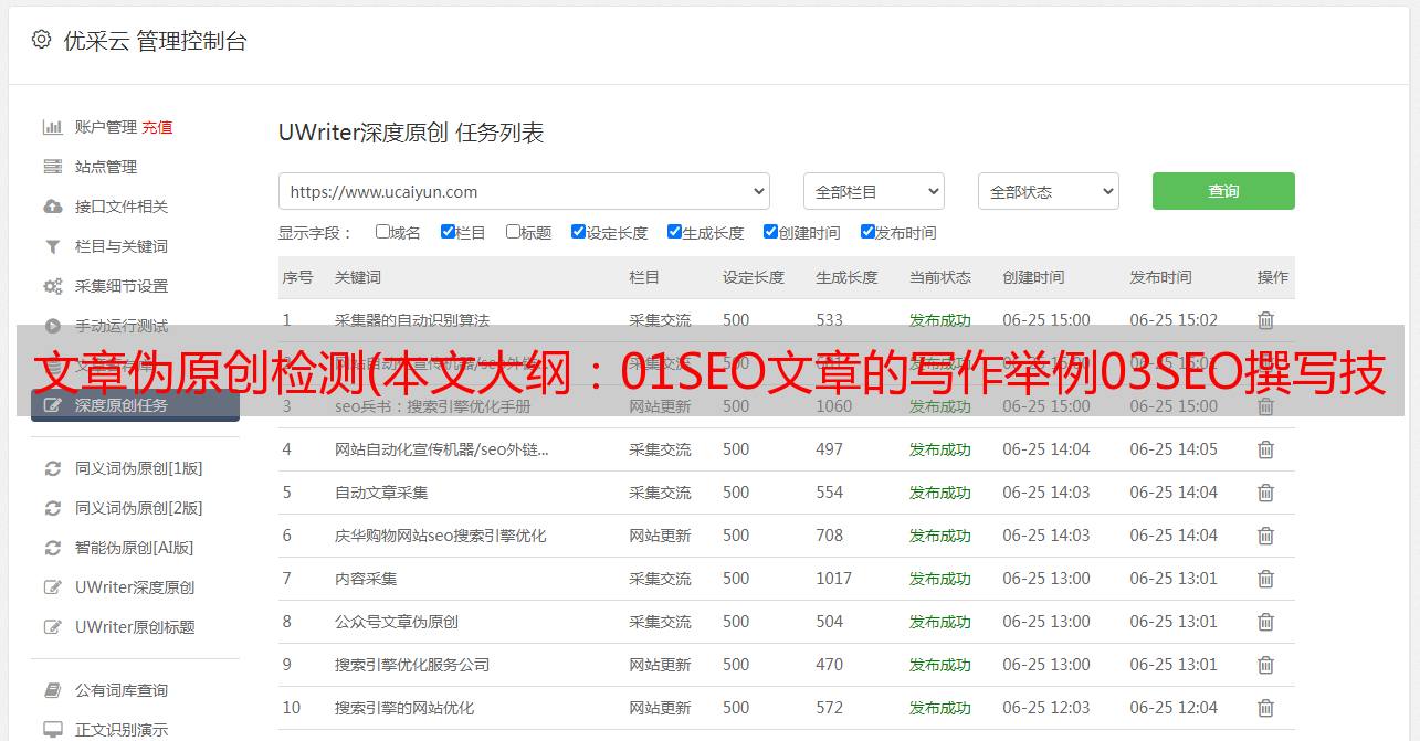 优采云 发布时间: 2022-01-29 11:11文章伪原创检测(本文大纲:01SEO文章的写作举例03SEO撰写技巧)