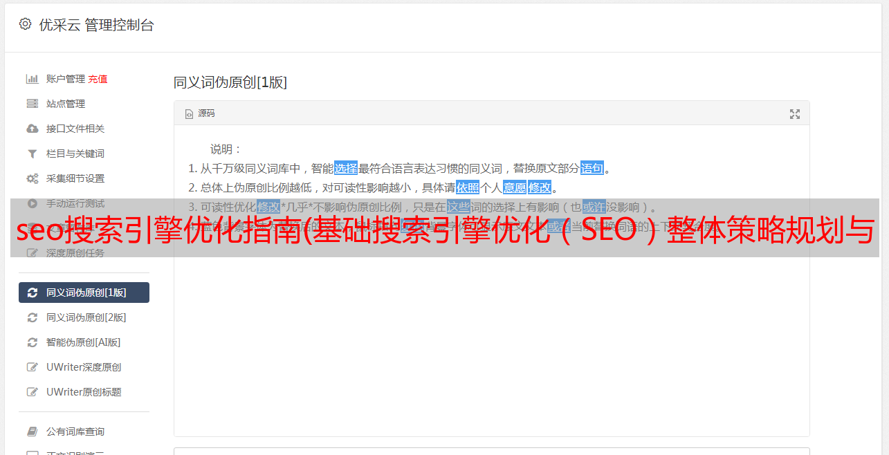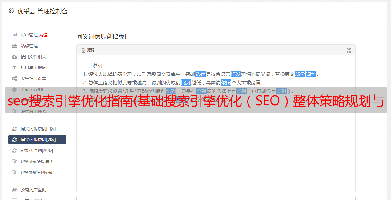 优采云 发布时间: 2022-01-29 15:01seo搜索引擎优化指南(基础搜索引擎优化(SEO)整体策略规划与定位根据策略