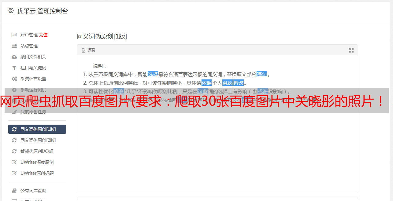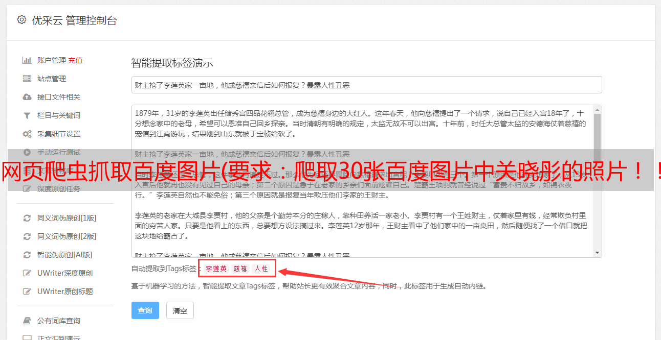 优采云 发布时间: 2022-01-29 22:11网页爬虫抓取百度图片(要求:爬取30张百度图片中关晓彤的照片!!