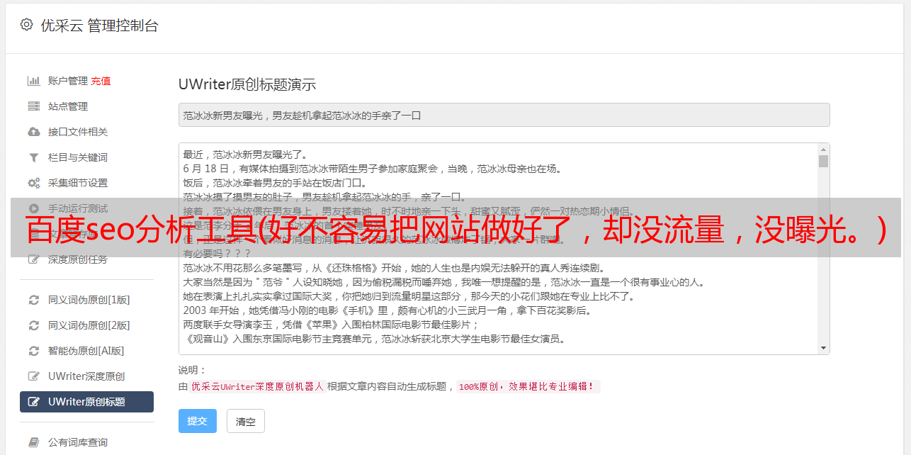 百度seo分析工具(好不容易把网站做好了,却没流量,没曝光。)