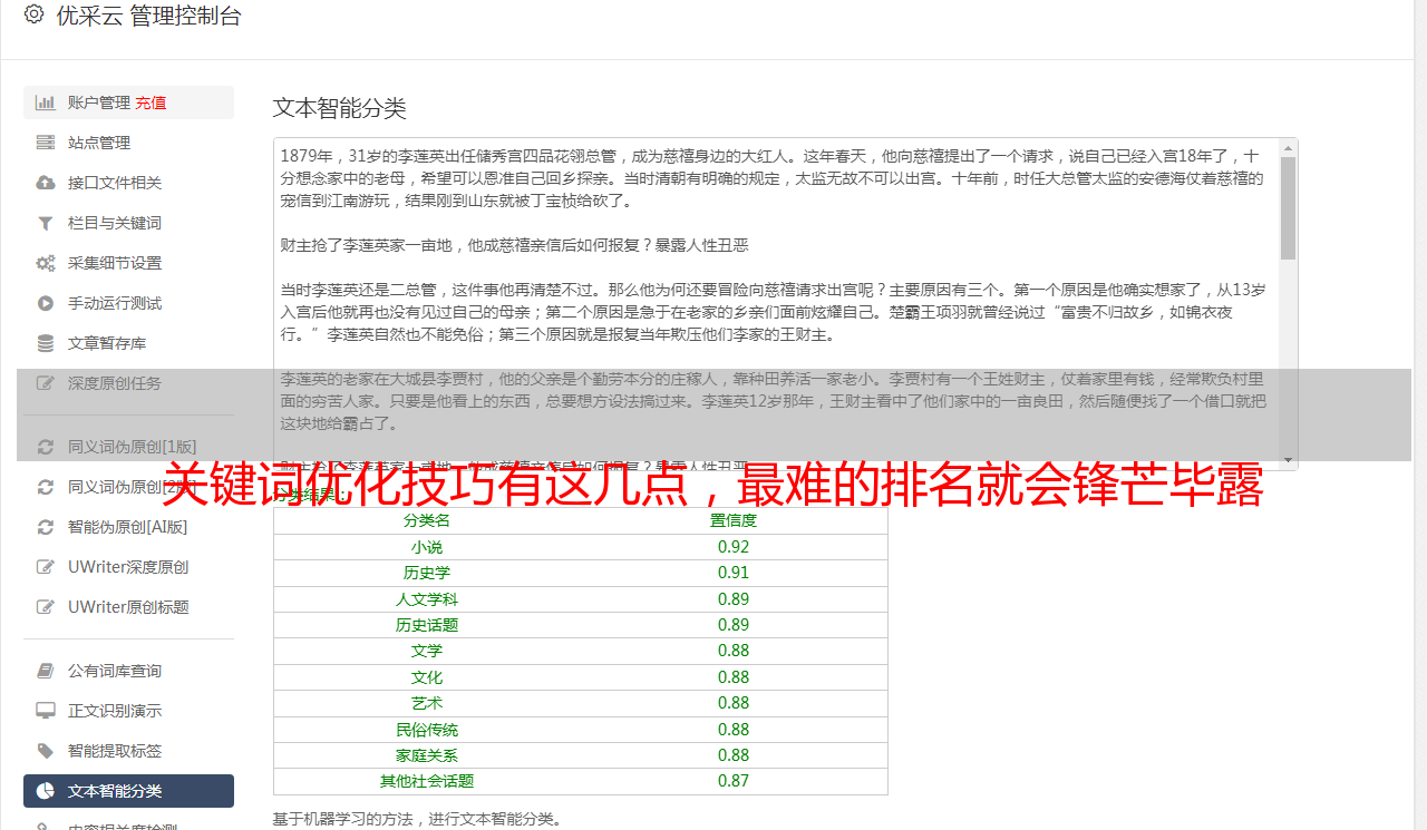 网站优化也是出于同样的原因,每个细节都就位,并且某些细节的泛化得分更高,因此网站 关键词的排名将很明显。 关键词布局是网站优化的一部分,不能忽略。通常,关键词优化技术具有这些要点,最困难的关键词可能是需要在首页上布置策略关键词,如果没有必要在列页面上布置关键词或列表页面,长尾关键词内容页面的布局可以说是文章页面。