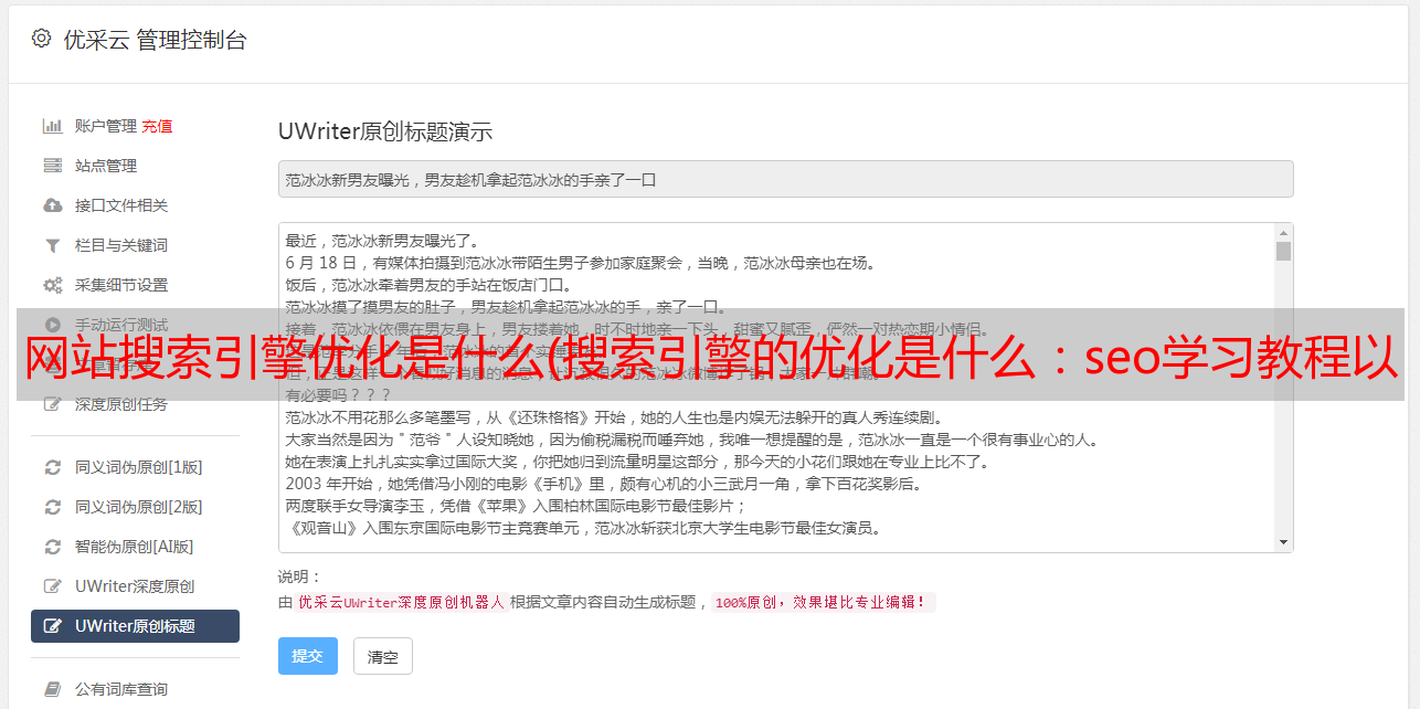 优采云 发布时间: 2022-01-31 05:13网站搜索引擎优化是什么(搜索引擎的优化是什么:seo学习教程以及免费的seo)