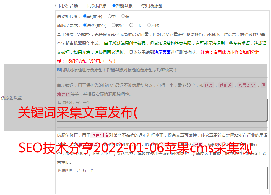 11、工具设置锁定词(文章原创文章可读性和核心词不会原创时自动锁定品牌词和产品词)