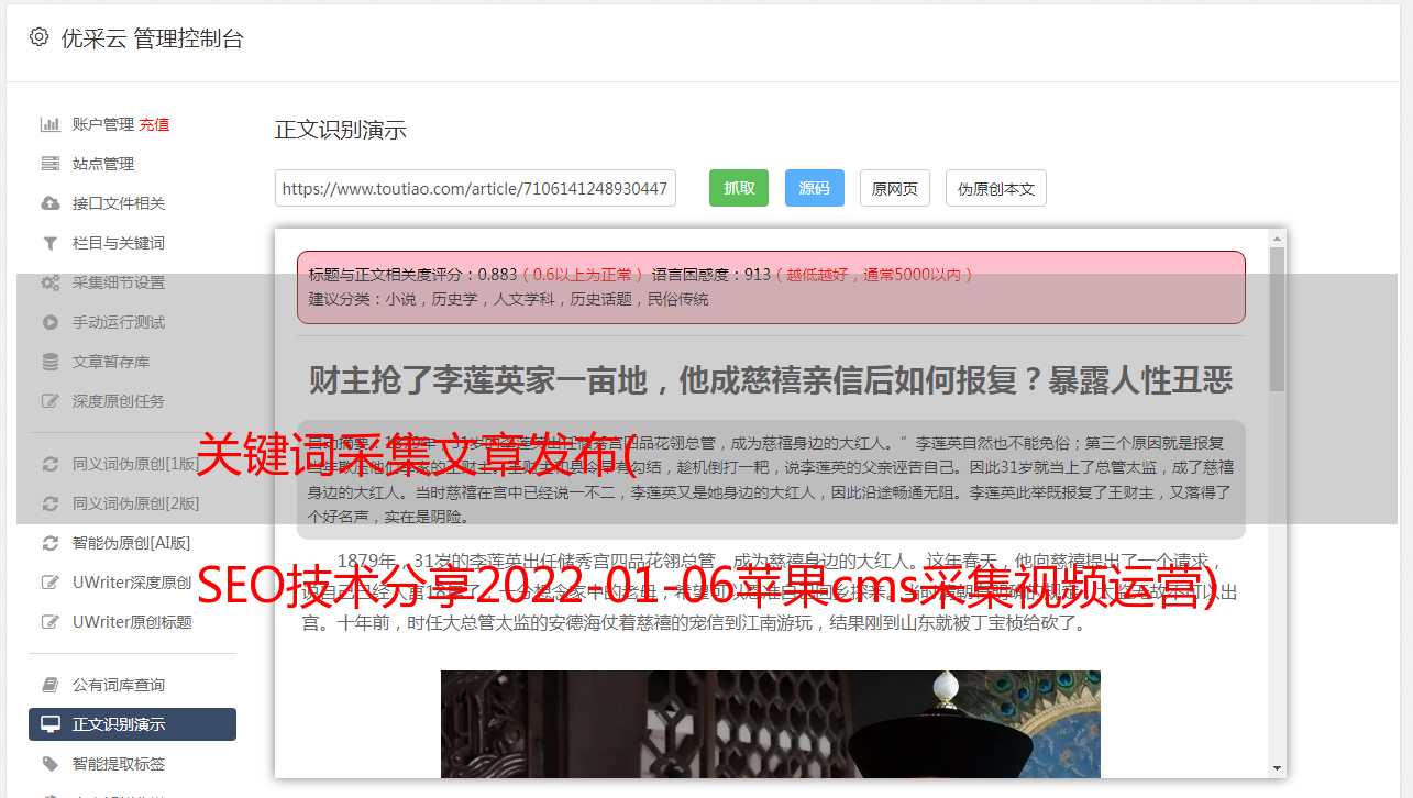 关键词采集文章发布( SEO技术分享2022-01-06苹果cms采集视频运营)