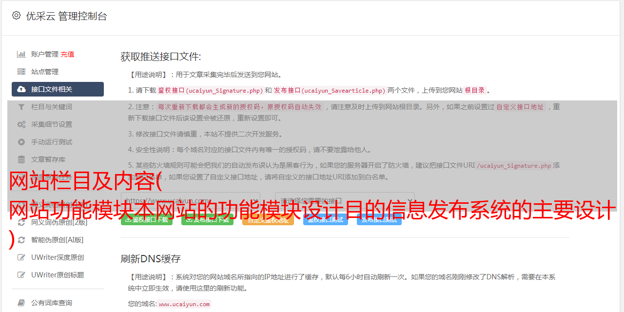这项工作不仅繁重、技术难度大,而且往往需要专业技术人员来进行。我们会专门为网站后台管理维护工作设计一个管理功能模块。设计的重点是通过交互式操作界面和简单明了的操作步骤来实现所有网站日常管理工作。,尽量减少后台管理和维护的工作量。功能说明