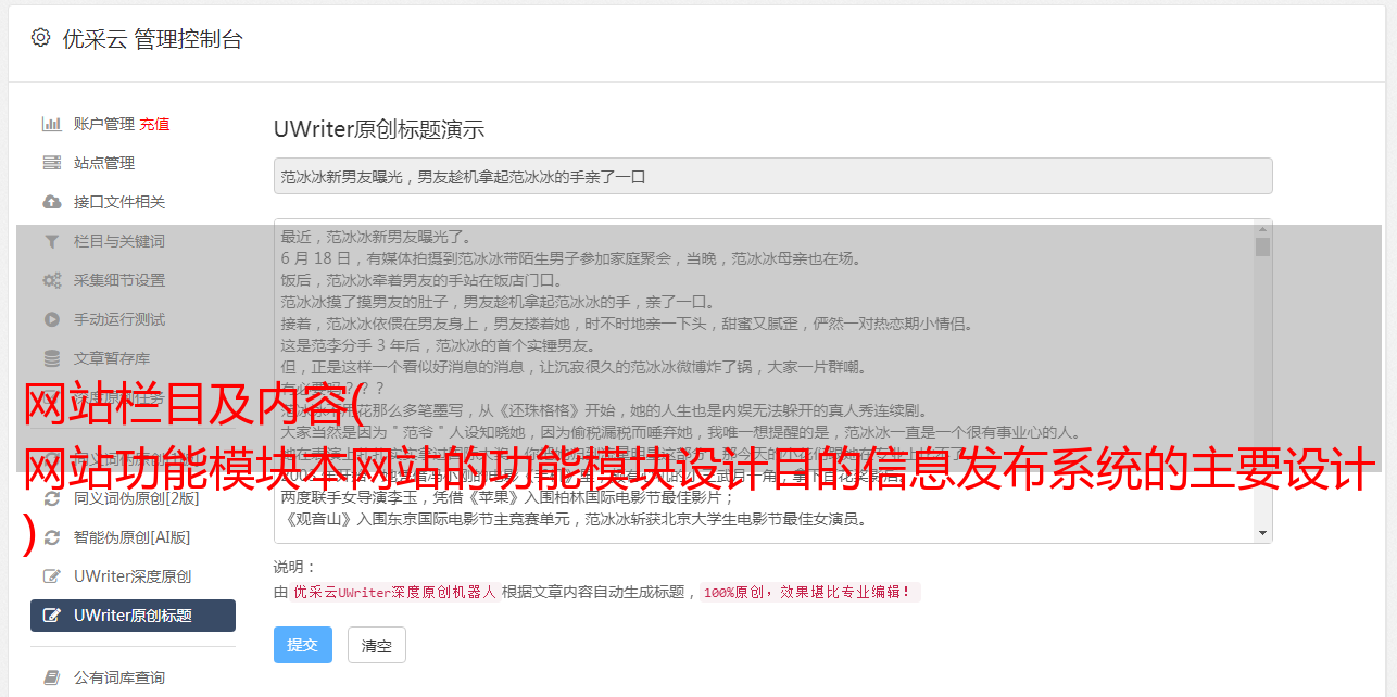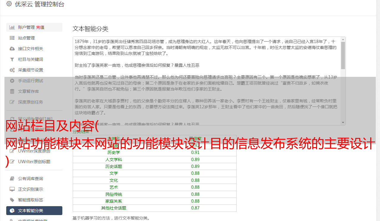 优采云 发布时间: 2022-02-01 06:23网站栏目及内容(