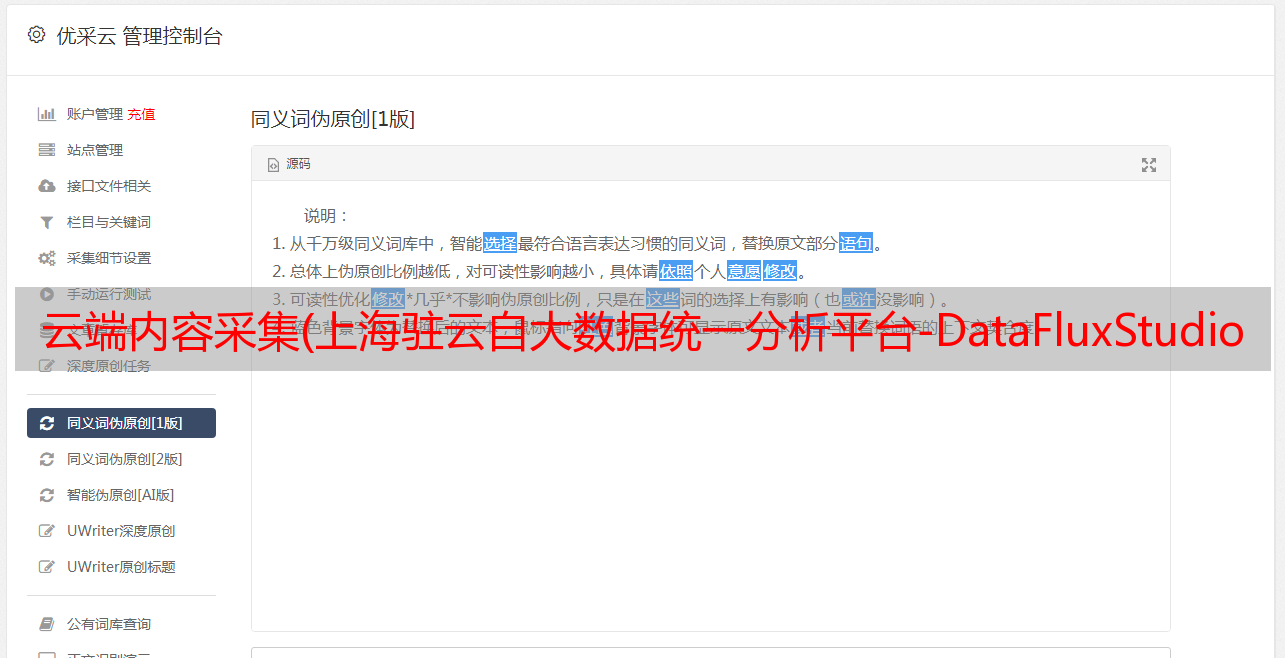 云端内容采集(上海驻云自大数据统一分析平台-DataFluxStudio实时数据洞察平台 )